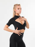 У нас вы найдете топы, боди и блузы для бальных и клубных танцев самых разных фасонов от строгих с длинными рукавами до откровенных с вырезами, гипюром и сеткой.