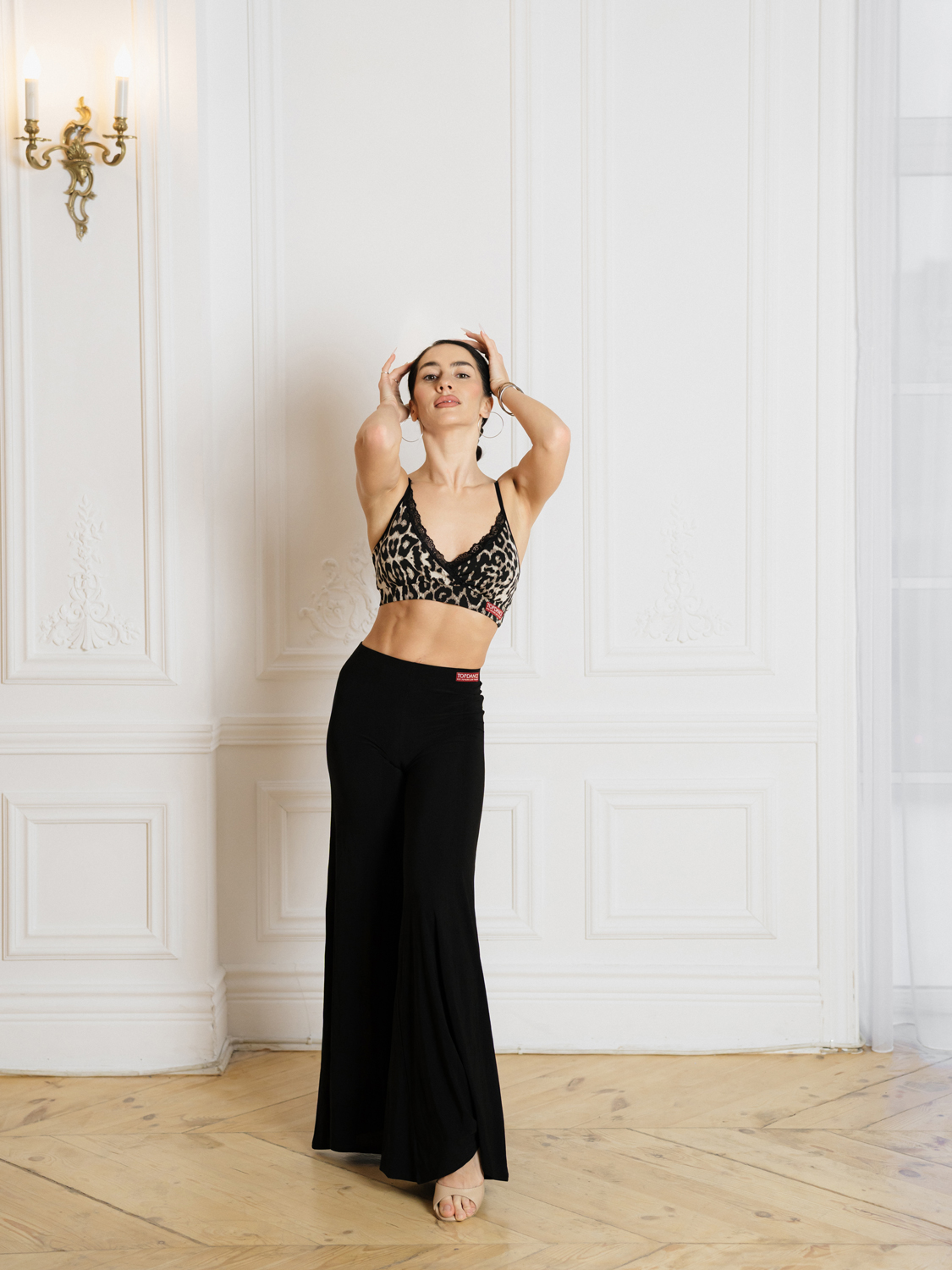 Короткий топ для танцев на тонких бретельках с элегантной кружевной отделкой, в данной модели есть вшитые чашечки.