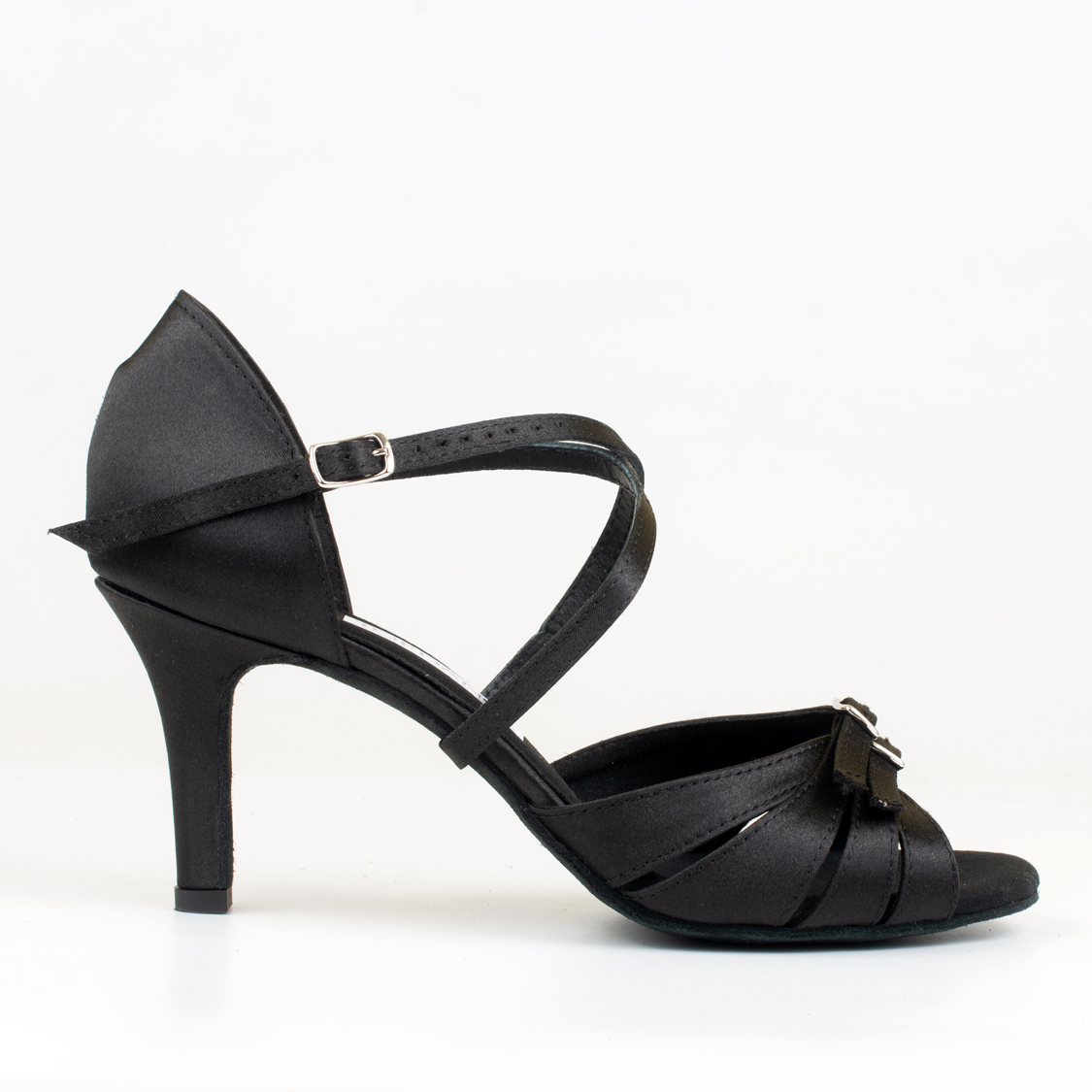 Туфли для латины и социальных выполнены в блестящем сатине черного...